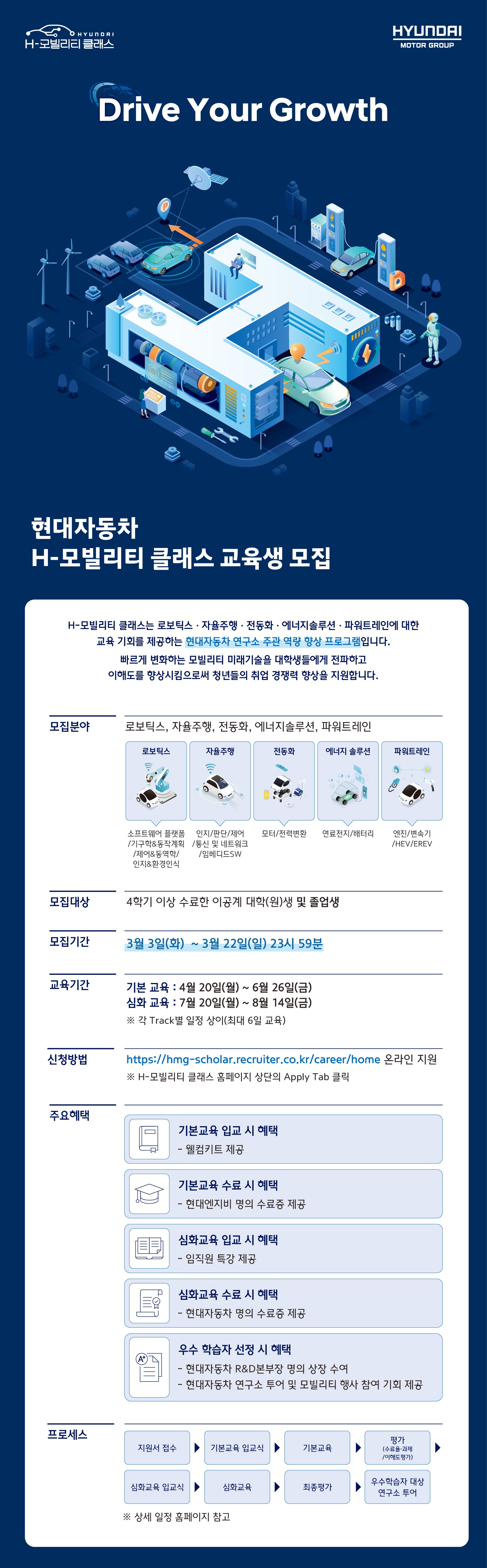 [현대엔지비] 2026년 현대자동차 H-모빌리티 클래스 교육생 모집 (3/3 (화) ~ 3/22 (일) 23시 59분)