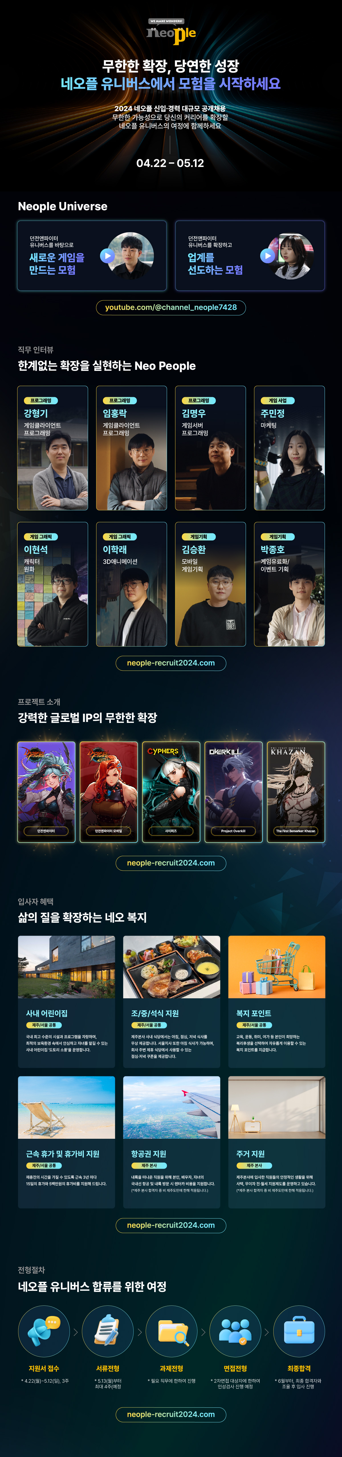 | [네오플] 2024 대규모 공개채용 #프로그래밍 #게임그래픽 | |||